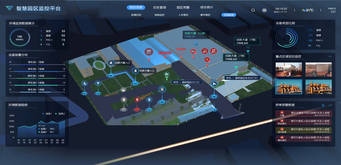 通过生物识别、人员及车辆识别、人群智能分析,驱动安防应用前端化、云端化、平台化、行业化,利用物联网技术,把感知设施和智能设备嵌入到各种环境监控对象中,通过服务器、云平台、物联网进行有效整合,实现园区不同环境业务系统整合,服务环境管理、决策智能的精细化、动态化。